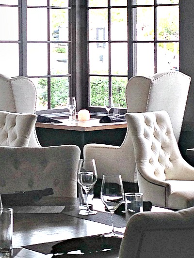 Floor to ceiling windows and an elegant wooden bar make this an ideal place for romantic dining.